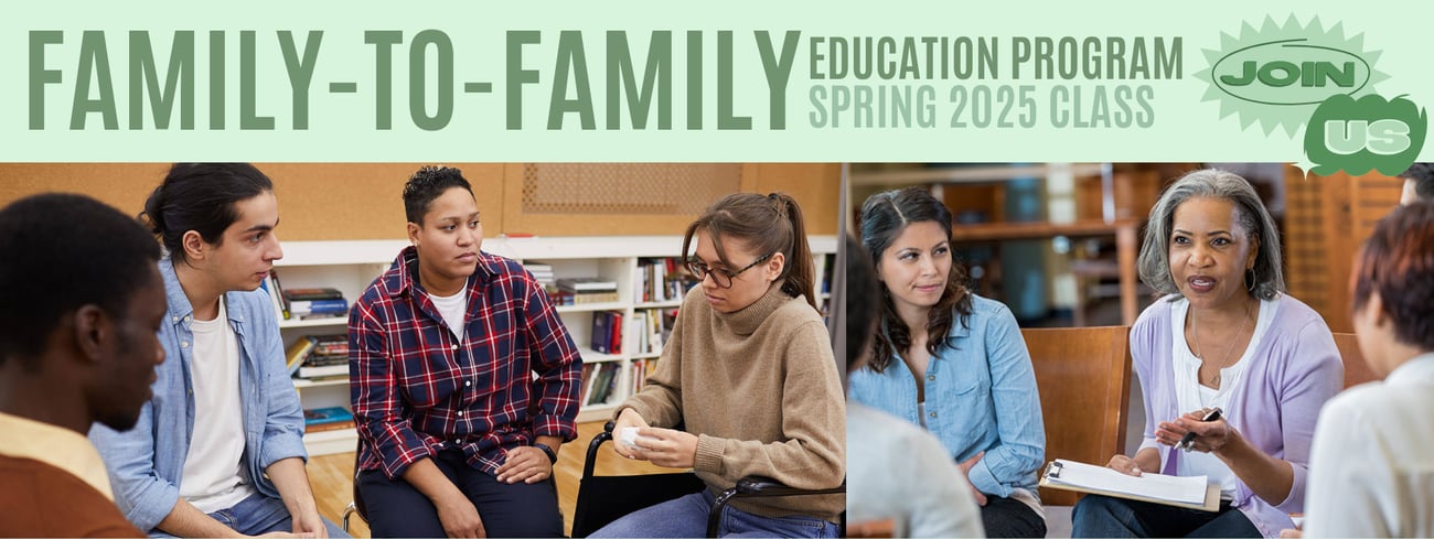 A new NAMI Family-to-Family session is starting this spring for family members and close friends of adults living with mental illness. This FREE, 9-week education and support program offers updated insights, practical skills, and a supportive space led by trained NAMI teachers who are also family members themselves. Whether you’re returning for a refresher or joining for the first time, Family-to-Family provides tools to better understand mental health, strengthen communication, and feel more confident supporting your loved one, while also caring for yourself.
