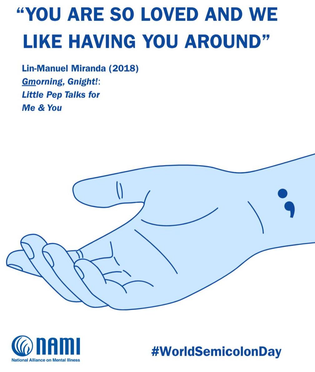 As you go about your day, remember that mental health isn't a destination, it's a journey. It is okay to not be okay, and it is even better to ask for help. Whether you are wearing a semicolon today or simply holding space for someone who is, your compassion makes a difference.